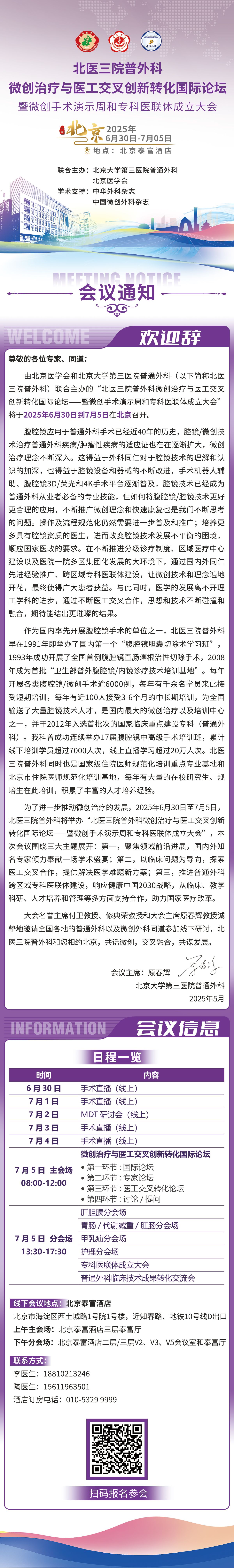 【会议通知】北医三院普外科微创治疗与医工交叉创新转化国际论坛暨微创手术演示周和专科医联体成立大会