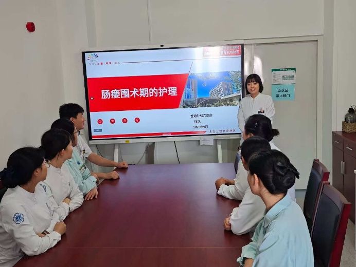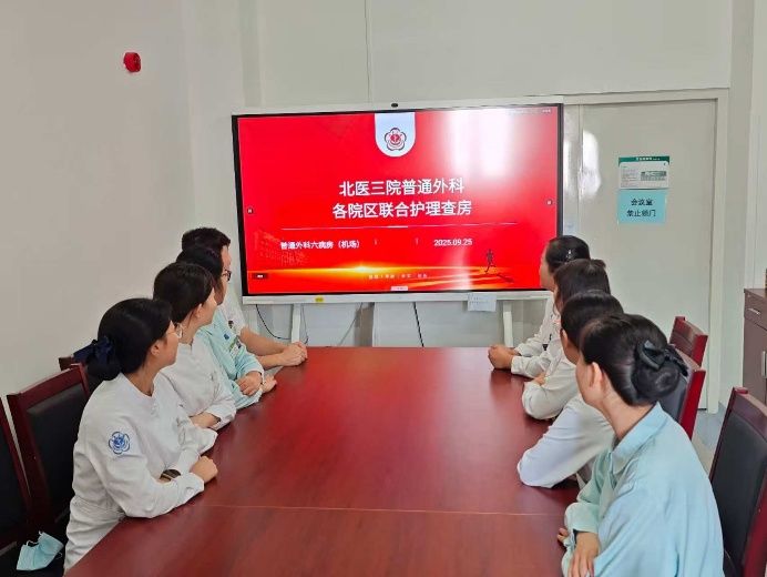 2025年9月25日中午12时,由北医三院普外科牵头组织的普外科系统护理联合查房如期举行,会议参与者涵盖普外科系统本部及七个分院区。此次查房采取线上线下相结合的形式,由普通外科六病房(机场)承担,线下在北医三院首都国际机场院区进行,护理部副主任周玉洁,北医三院本部、北方、党校、北部、延庆、崇礼、延安院区普外科病房护士长及护士线上参加。
