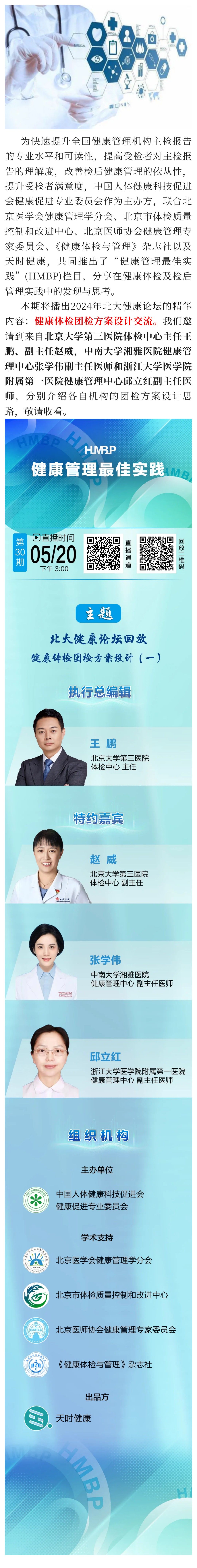 直播预告|HMBP北大健康论坛特别节目:健康体检团检方案设计(一)
