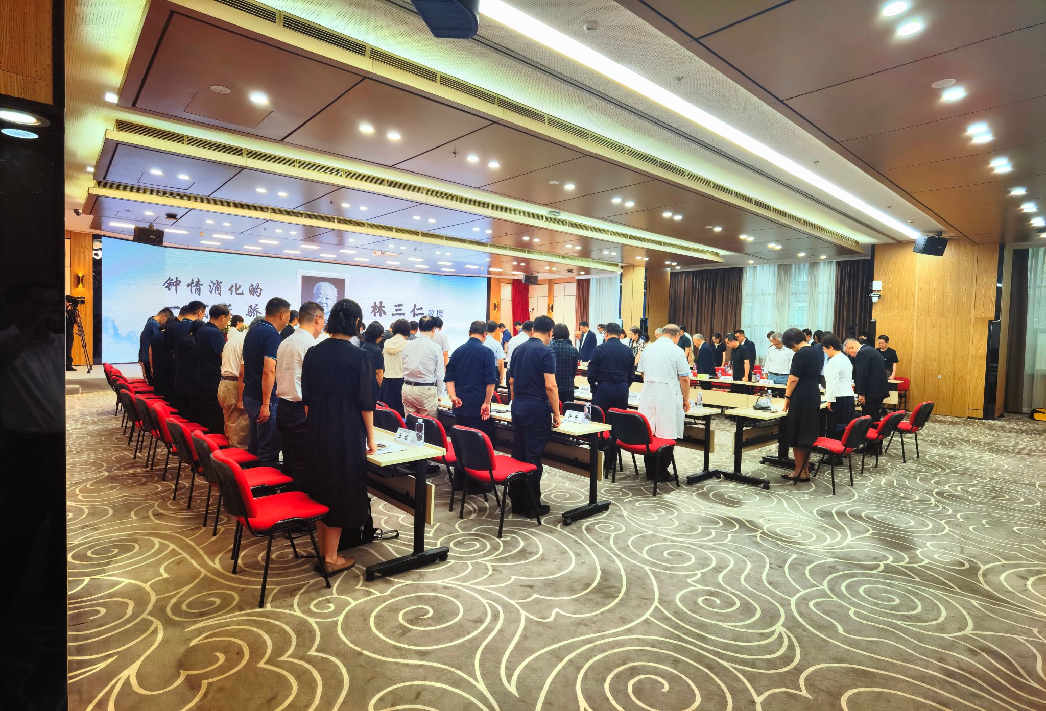 视频播放结束后,主持人丁士刚教授提议,为表达对林三仁教授的缅怀之情,大家起立默哀一分钟。