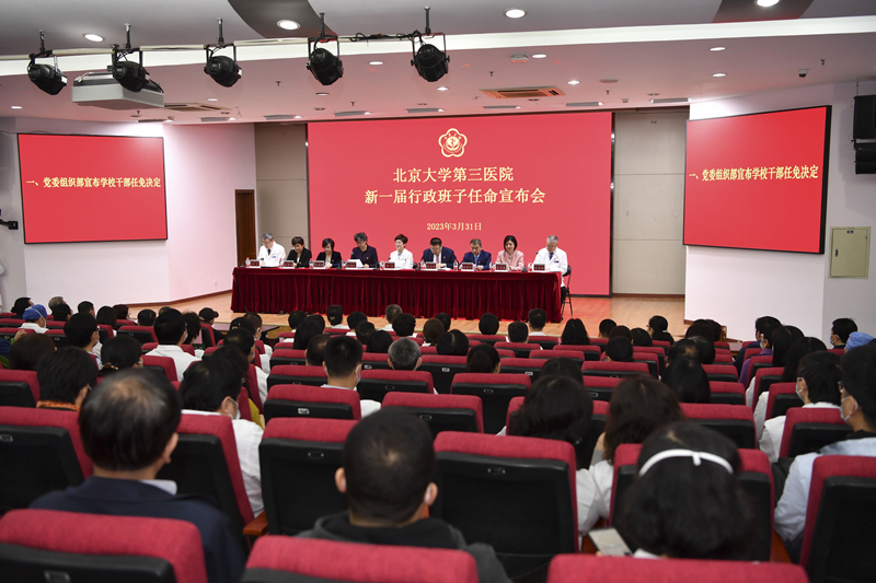 2023年3月31日上午,北京大学第三医院新一届行政班子任命宣布会在科学报告厅召开。会上宣布任命医院新一届行政领导班子人选,付卫接替乔杰担任北京大学第三医院院长,沈宁、宋纯理、李蓉、唐熠达任副院长,任命李春为...