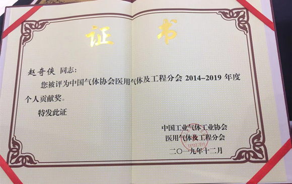 基建处赵奇侠处长当选中国工业气体工业协会医用气体及工程分会第二届理事会副会长