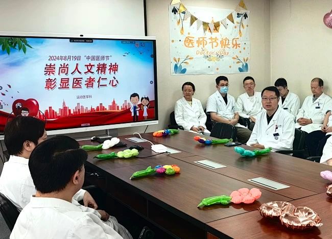 云天收夏色,木叶动秋声。时序如歌,秋意渐浓。在第七个中国医师节来临之际,北京大学第三医院运动医学科响应今年中国医师节主题“崇尚人文精神,彰显医者仁心”,举办了8·19中国医师节庆祝仪式。旨在表彰医务人员的辛勤付出,弘扬崇高的职业精神,同时加强团队凝聚力,共谋学科发展。仪式采用现场+云视频的形式连线运动医学机场院区,北京大学运动医学研究所名誉所长敖英芳教授、机场院区副院长印钰教授及部分专家教授、运动医学科护士长王欣、各病房护士长及在岗员工代表到场参加仪式。