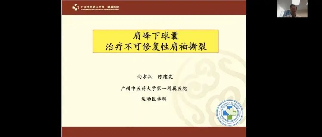 来到了病例讨论环节,由北医三院运动医学团队系统汇报了第一次医联体专科查房中,一例复杂肩关节术后感染病例的阶梯式治疗方案及随访结果,其个体化抗感染策略引发深度思考。随后,广州中医药大学附属第一医院运动医学中心向孝兵教授团队的陈建发主任专题分享了“肩峰下球囊置换术在不可修复性肩袖撕裂中的应用”,通过典型病例的手术视频演示和功能评估数据,全面展示了该创新技术的临床价值。不同学术观点的碰撞为临床实践提供了新的诊疗思路。