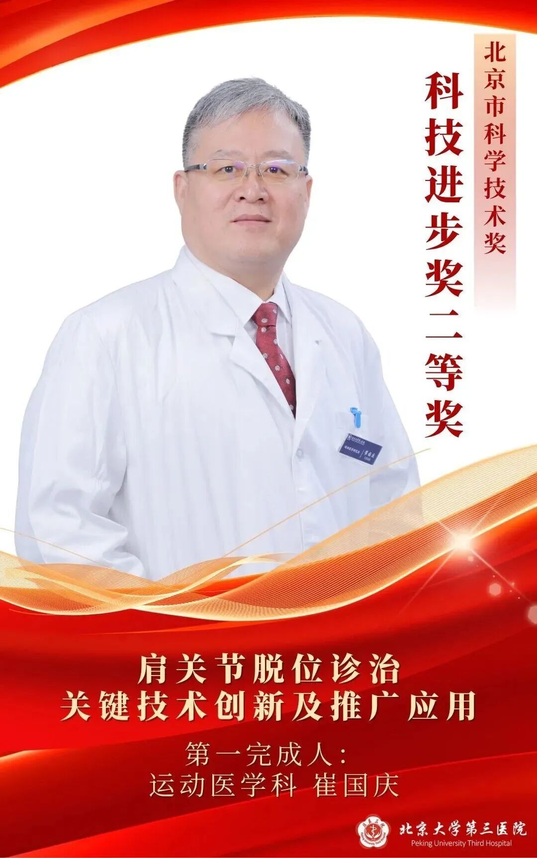 北京大学第三医院运动医学科崔国庆教授团队的《肩关节脱位诊治关键技术创新及推广应用》荣获科技进步奖二等奖,妇产科严杰研究员团队的《生殖系细胞与复杂组织仿生控冰冻存关键技术突破与应用》荣获技术发明奖二等奖。