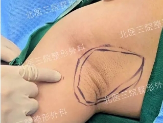 图为腋臭微创吸脂法手术设计图,内圈为腋毛范围,