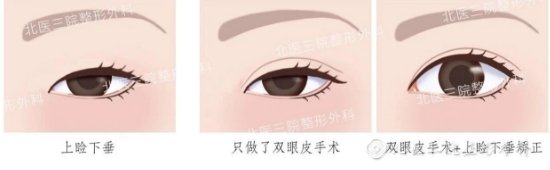 在有上睑下垂的眼睛上单纯进行双眼皮手术,术后只是拥有了双眼皮的皱褶,而上睑提肌的力量并没有得到任何改善,角膜(黑眼球)无法正常暴露,眼睛看起来依然无神,故不能只做双眼皮手术。