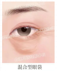 兼有以上两者的特点,下眼睑膨出的脂肪过多且体积大,皮肤松弛,通常还伴随泪沟凹陷。这类眼袋一般出现在40岁以上人群中。