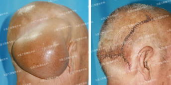 比如下面这位患者的表皮样囊肿,长了有50多年,一点点变大,直到几乎占了右半个脑袋,出现了疼痛才来就诊,这种情况往往需通过手术完整切除。