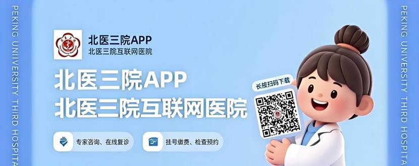 下载 “北医三院” APP。您可以通过手机应用市场搜索 “北医三院” 进行下载;也可以通过长按下图中的二维码进行下载。
