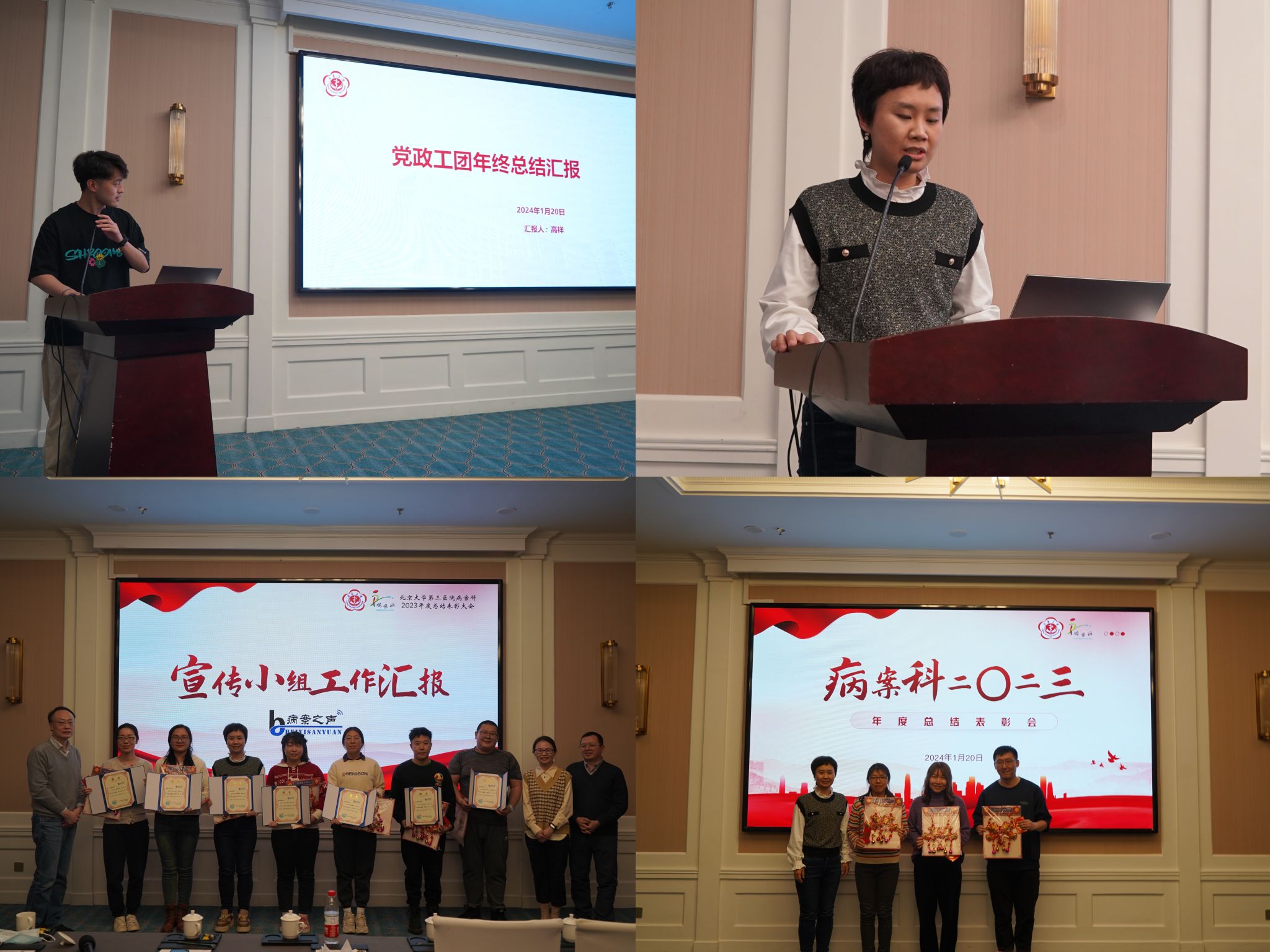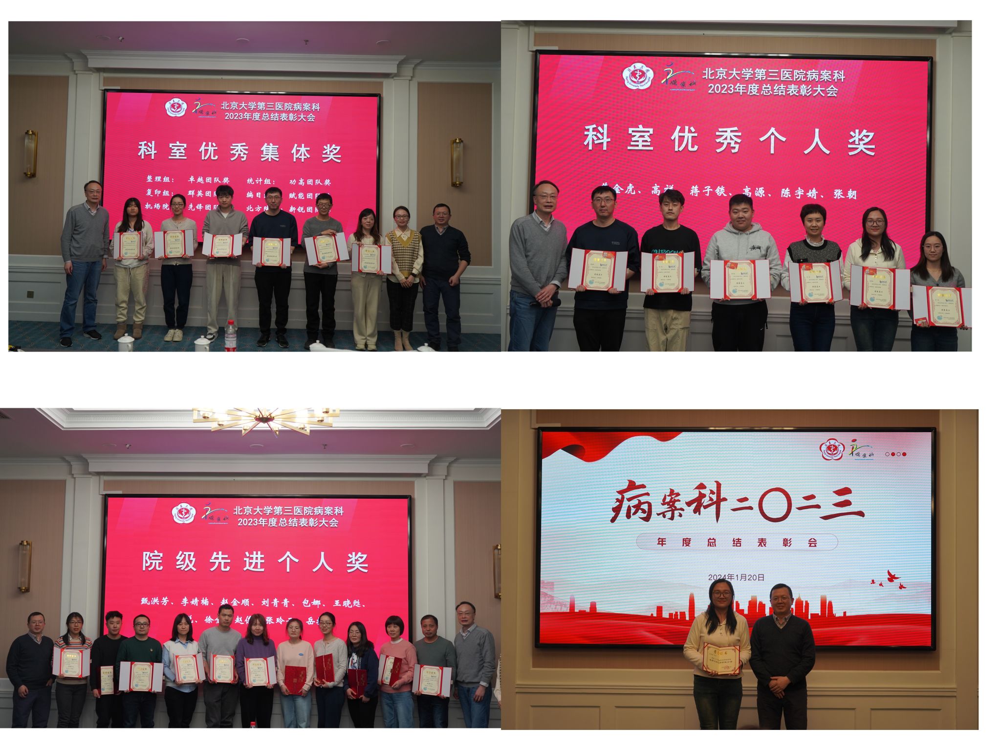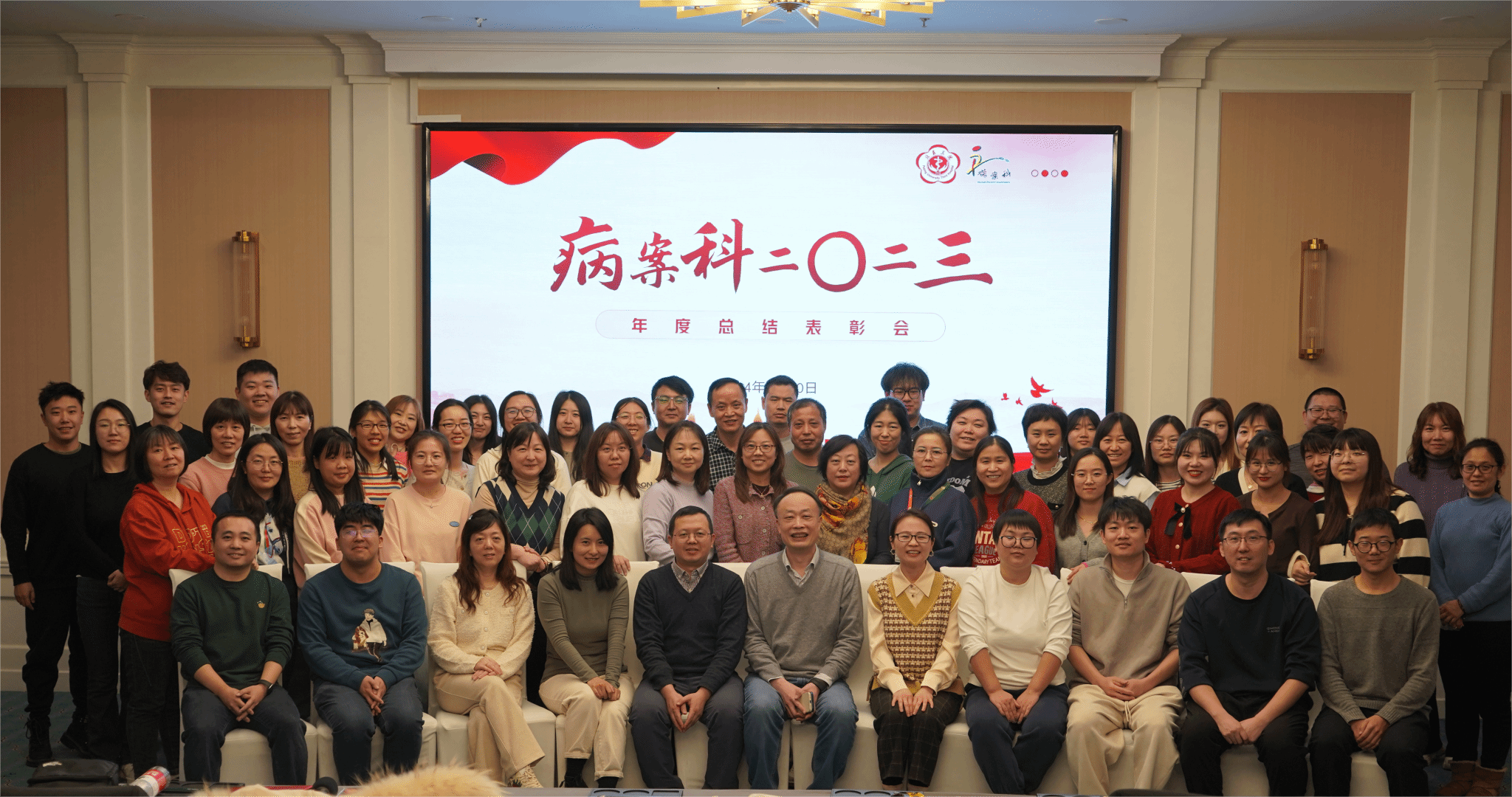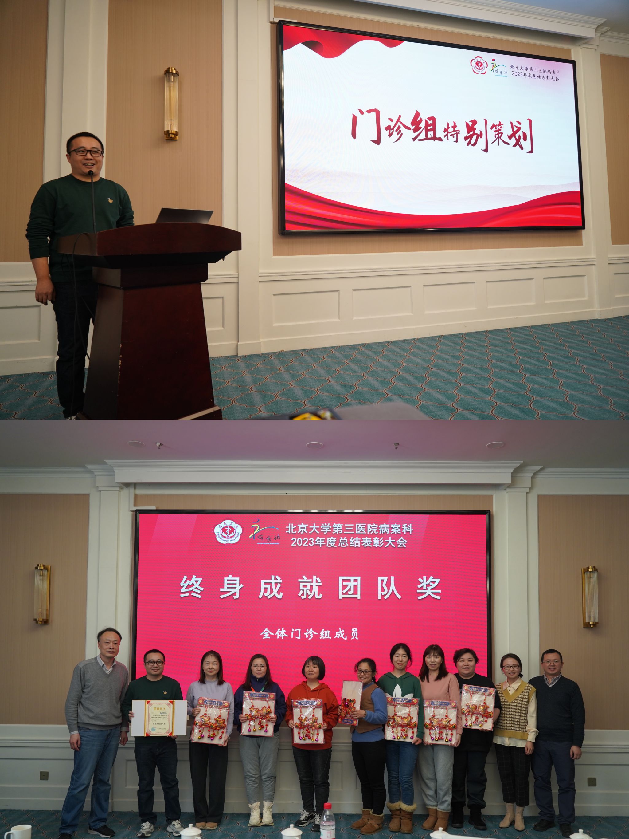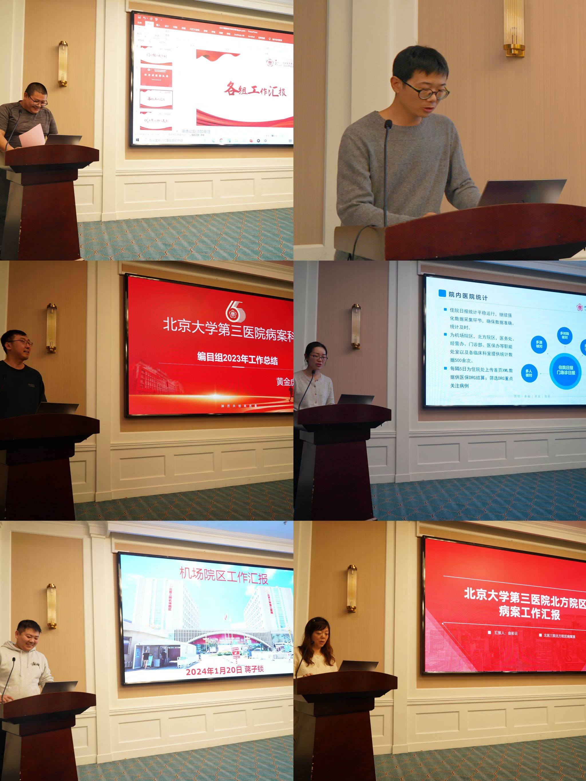 致敬来时路,奋斗正当时,为更好的总结过去,展望未来,2024年1月20日,北京大学第三医院病案科在北方温泉会议中心第二会议室举行了2023年度总结表彰大会。病案科党支部书记、主任陈剑铭、副主任李杨、副主任吴虎兵及核心组成员出席大会,本部、机场院区、北方院区共56人参加会议。