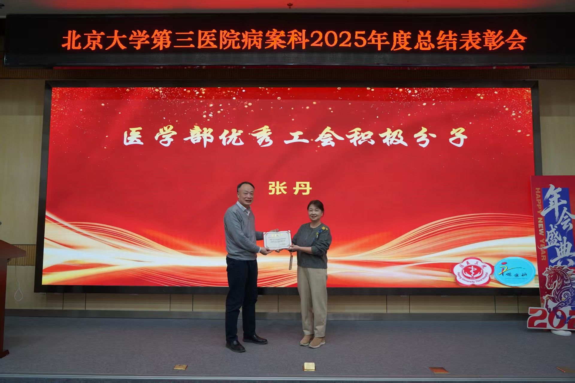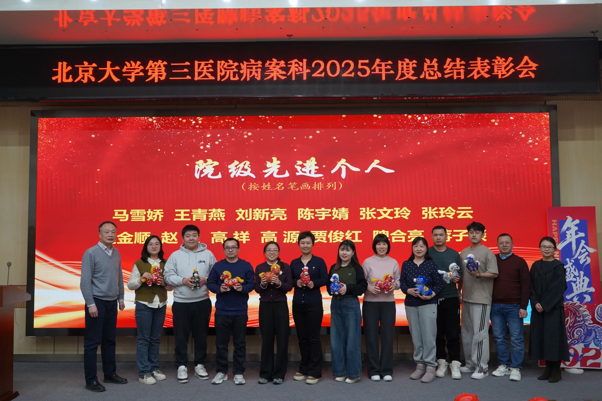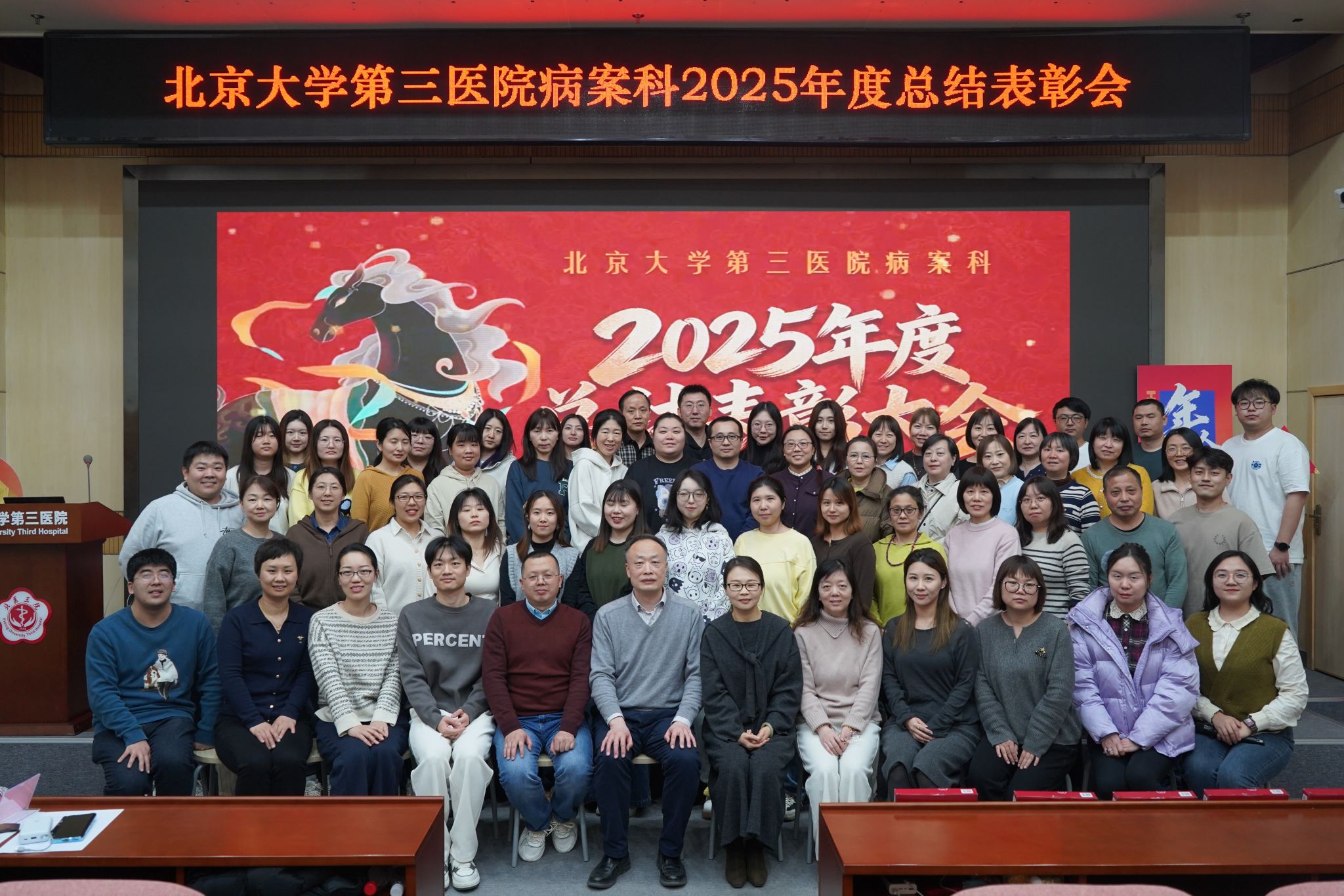 2026年1月24日下午,北京大学第三医院病案科2025年度总结表彰大会在健康医学中心楼136会议室隆重举行。科室全员齐聚一堂,重温并肩奋斗的难忘历程,表彰先进典型,共话未来发展新篇。