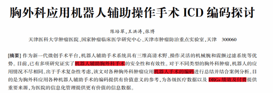 某医院通过首页记录的机器人手术的编码,再结合案例分析,为各级医疗数据以及DRGs绩效及付费提供分析基础,为医院的信息化管理提供更有价值的信息数据。