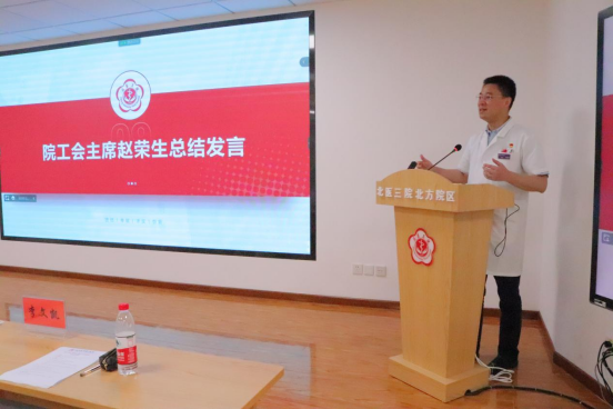 会前,常务副主席刘温文做开场讲话及工作动员。选举结束后,王青山院长做会议总结,他指出:在北医三院工会的领导下,分院区的工会工作愈加丰富多彩。希望新一届分工会委员会再接再厉,为分院区员工提供更好更贴心的服务。最后,工会主席赵荣生讲话,他表示:看到了各位会员踊跃参与投票,认为此次选举结果充分反映了各位会员的真实意愿,并对本次会议的组织及过程予以肯定。接下来,赵主席勉励新一届工会委员会,要紧密联系群众,助力行政领导班子,做好员工的服务工作。同时指出,三院的高质量发展要靠方方面面的共同努力,希望分工会能够在同质化管理、院区融合等方面发挥更大的作用。