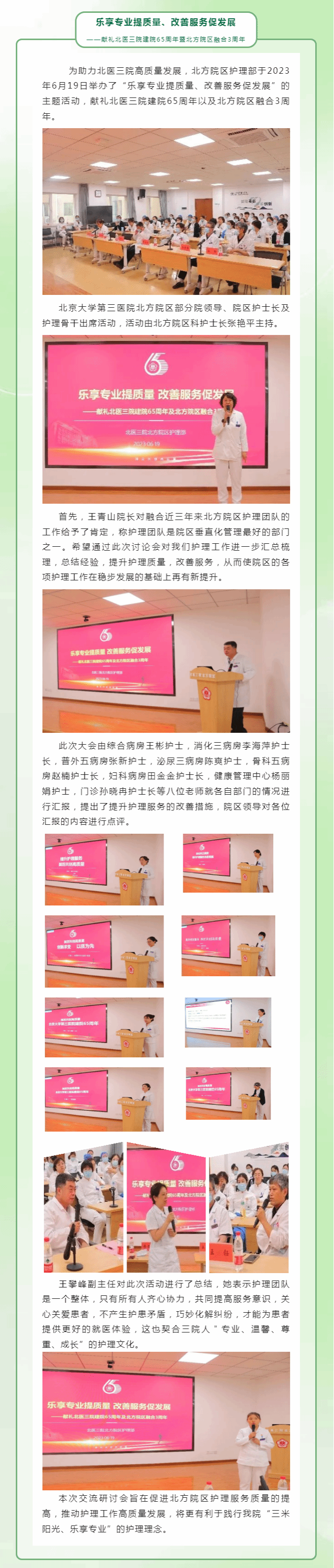 乐享专业提质量、改善服务促发展 ——献礼北医三院建院65周年暨北方院区融合3周年
