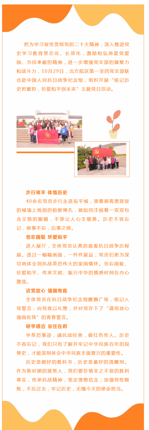 铭记历史担重担,珍爱和平创未来-北方院区一至四党支部联合开展主题党日活动