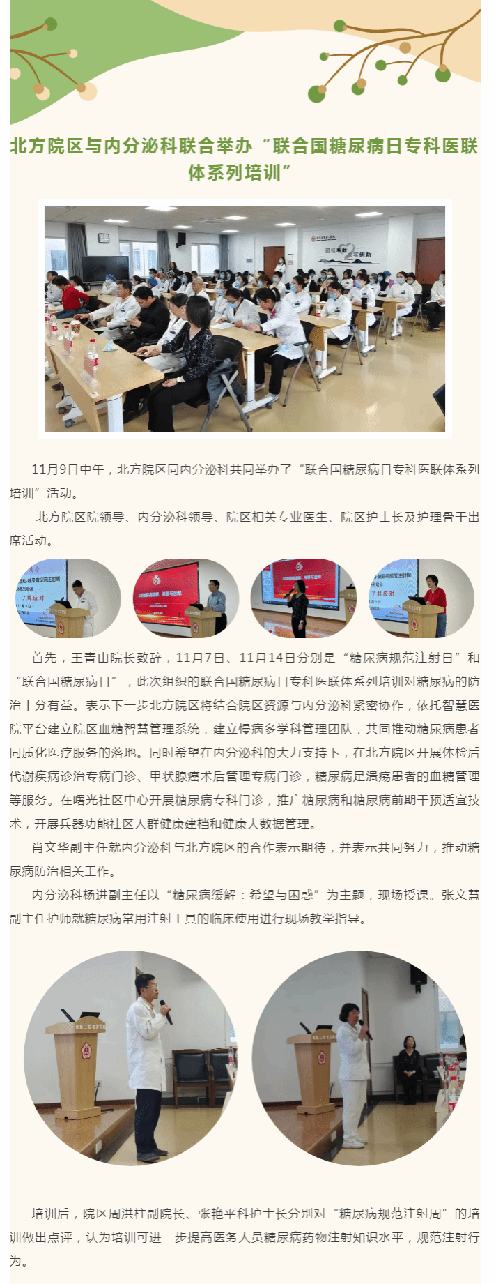 北方院区与内分泌科联合举办“联合国糖尿病日专科医联体系列培训”