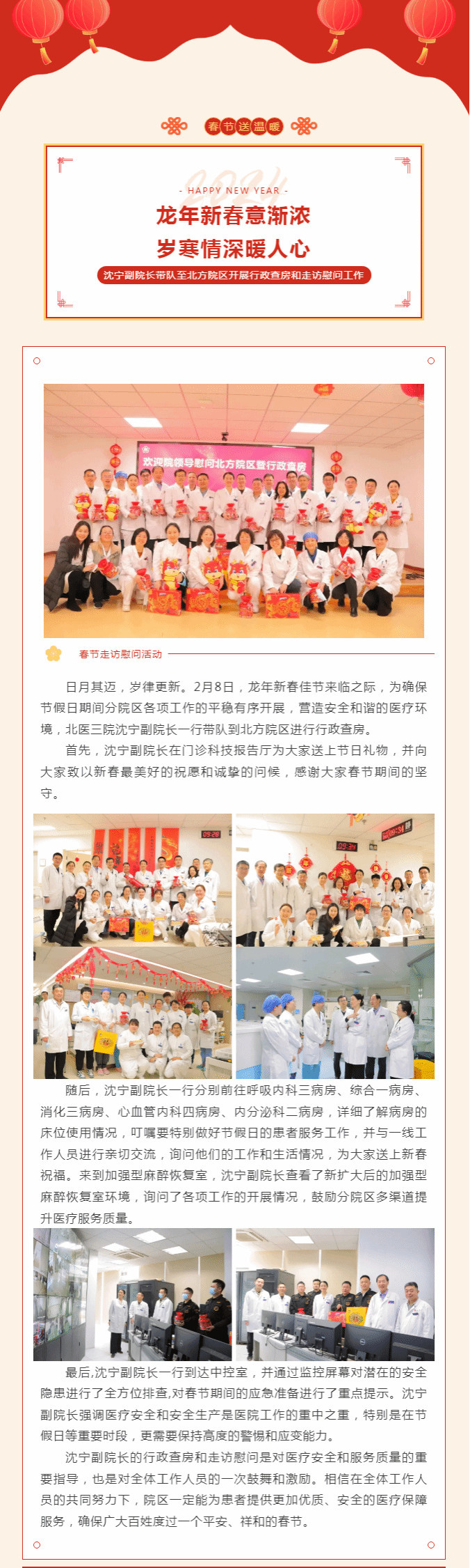 春节前夕沈宁副院长至北方院区开展行政查房和走访慰问工作