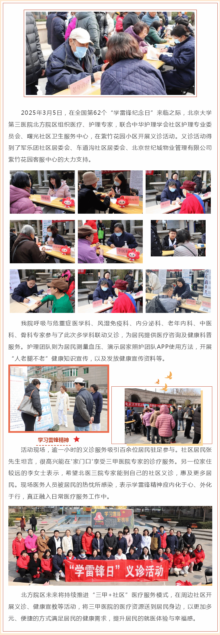 弘扬雷锋精神,践行健康中国——北京大学第三医院北方院区开展爱心义诊活动