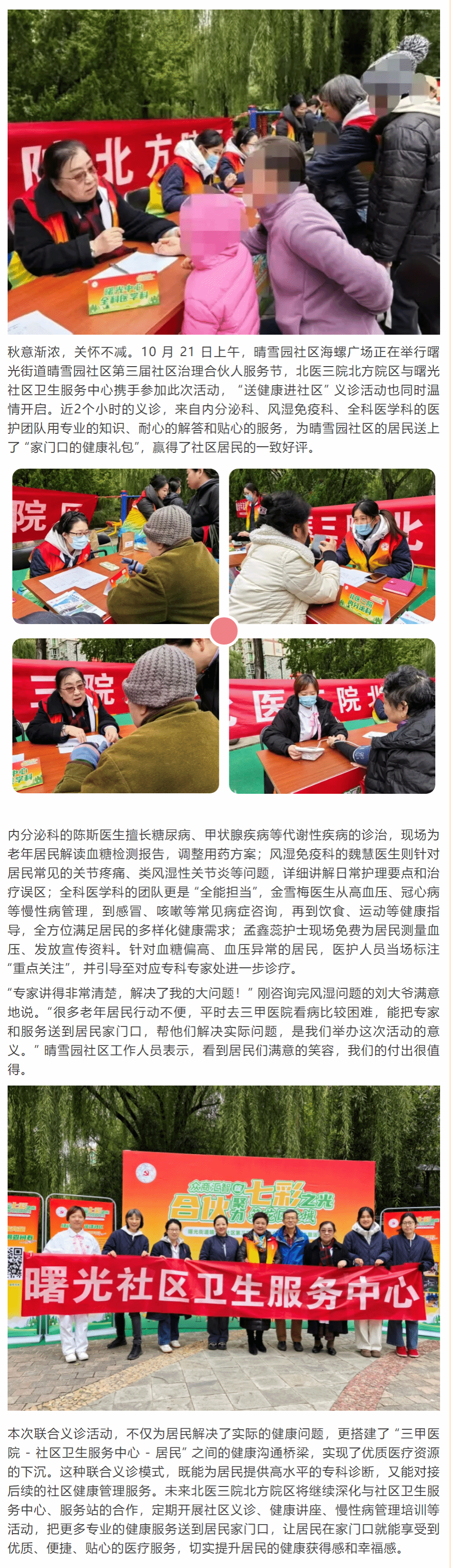 “情暖社区 健康同行”系列活动之曙光街道晴雪园社区义诊活动成功举办