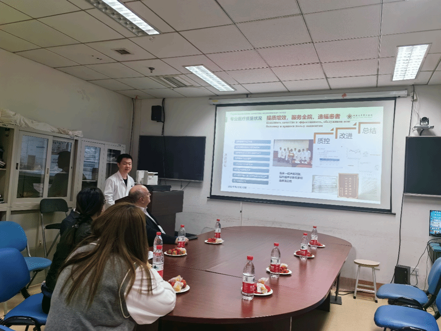薛恒医师向丘卡诺夫教授一行介绍北京大学第三医院及超声医学科的发展历程、人员结构、技术特色等基本情况