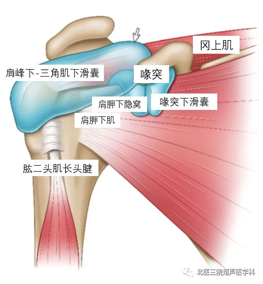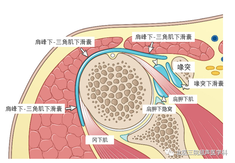 注:本文解剖图及超声病例来自文献Ruangchaijatuporn, T., Gaetke-Udager, K., Jacobson, J.A. et al. Ultrasound evaluation of bursae: anatomy and pathological appearances. Skeletal Radiol 46, 445–462 (2017) ,经修改。