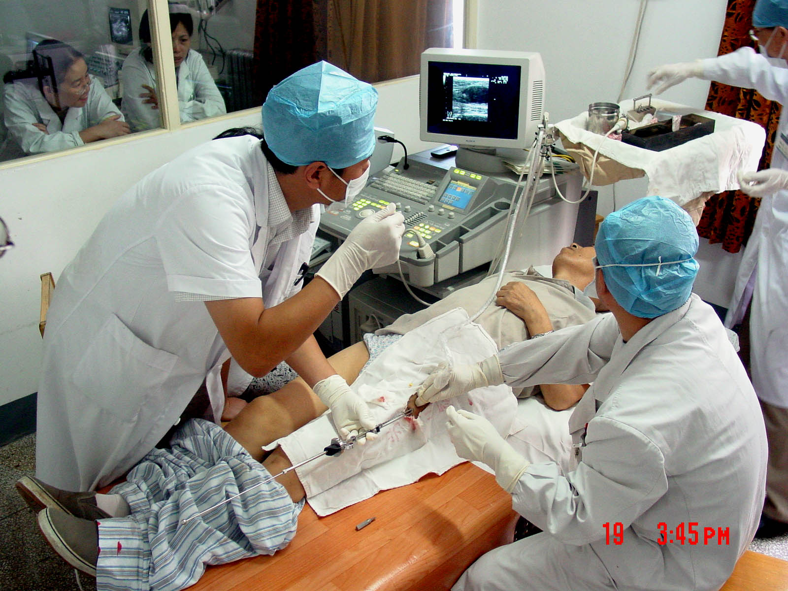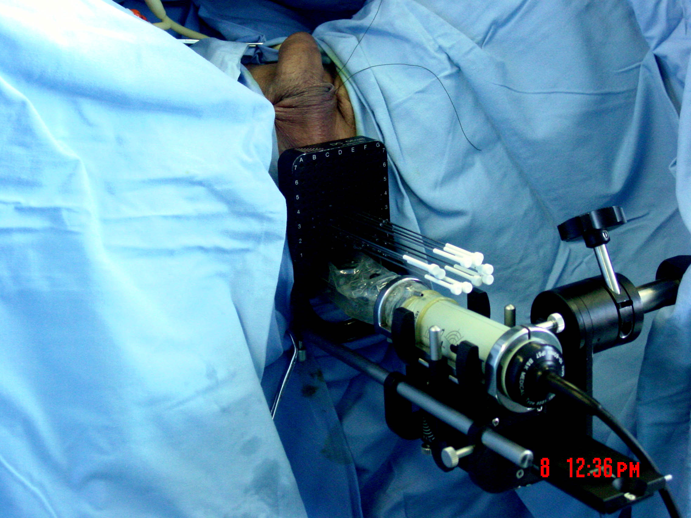 放射性粒子植入治疗肿瘤的方法在国外已应用几十年,近几年才引入国内。放射性粒子近距离治疗肿瘤是以不同的引导方式将放射性粒子通过特殊的穿刺针植入肿瘤内以达到治疗目的。以往粒子植入多通过核磁共振、CT引导,或术中直接穿刺,这些方法或费用较高,或操作复杂且过多接触放射线,不宜为患者和医生接受。