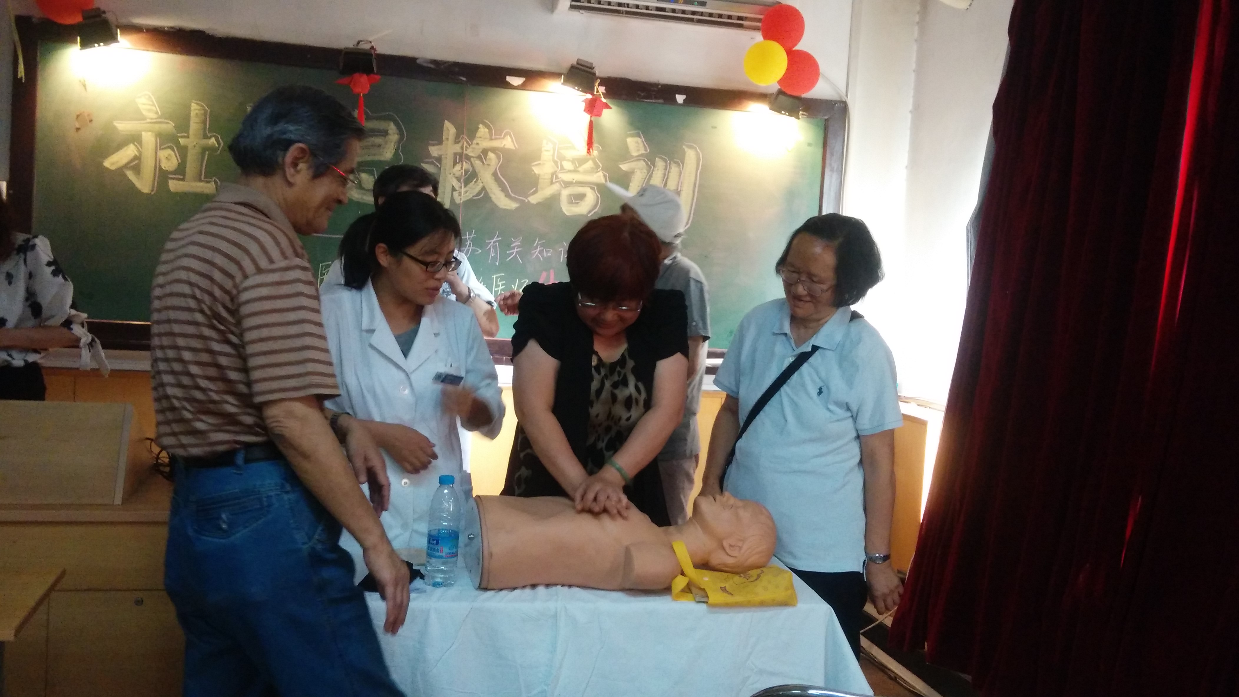 2014年6月11下午3点30到5点,在育新花园老教协第一会议室,第二门诊部党支部为38余名育新社区居民和5名育新地铁站工作人员进行了社区心肺复苏急救培训。活动首先由第二门诊部心血管专家牛杰主任利用图文并茂的多媒体,用通俗易懂的语言为培训人员进行讲解和演示生命支持的全部过程,并现场为大家答疑,其次在多名医护人员的一对一指导下,利用人体模型进行心肺复苏练习。培训人员不仅在理论上得到收获,实际的操作技能也得到锻炼,现场教室里座无虚席,培训人员的参与热情非常高涨,会后都表示有很大的收获。