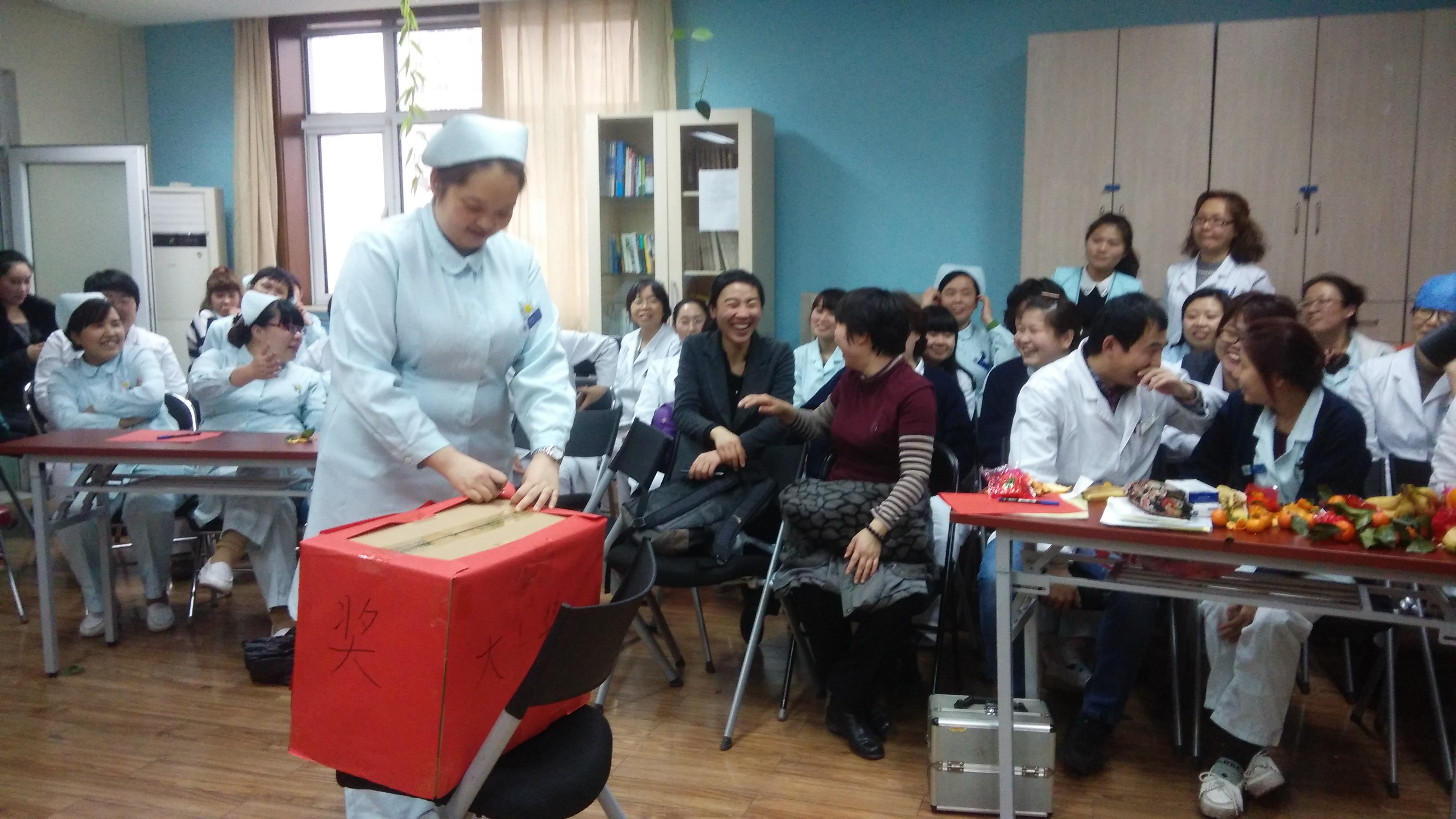 我们科拥有一支充满活力和激情的优秀团队,第一个节目就是团支部为大家带来的诗朗诵《我希望》,优美的音乐和朗朗的读诗声,为大家拉开了活动的序幕。在一片热闹声中,开始了元宵节猜灯谜的环节,大家自行组成四个小队—喜洋洋队、火龙果队、吃饱了有干劲队和荷塘月色队,各自推出自己的领队。灯谜从“三八节,打一常识”开始,为了获得舞台面前巨大的红色大奖盒,各队队员都全力以赴,发动大脑,快速用手点击手机,还要眼疾嘴快,答案五花八门、回答声此起彼伏。为了缓解大家的脑力疲劳,科室新女员工为大家进行了服装表演,飘逸鲜艳的衣裳,婀娜多姿的舞步、云水禅心的音乐,立体展示出古典服装的魅力,更衬托出新员工美丽的容颜,老员工情不自禁为她们鼓起了掌。又一轮的灯谜开始了,笑声和欢呼声不绝于耳,一样的紧张,一样的激烈,一样的热闹。不知不觉中,到了周金萍负责的压轴节目—小苹果现场表演,面对视频,熟悉的小苹果音乐果断响起,两个事先有练习的女员工,带着现场抓来的毫不知情的男女“壮丁”,开始了最后的疯狂,跳的人群魔乱舞,看的人前仰后合,一片笑的海洋。最后,激动人心的时刻到了,吃饱了有干劲和荷塘月色队联合战队获得了大奖,大奖的盒子在大家注视下露出了真面目,原来是一个养胃舒颗粒大药盒,连去3层,终于刨出了整整齐齐排练笔直的数十个擦手霜,让大家又意外又开心!