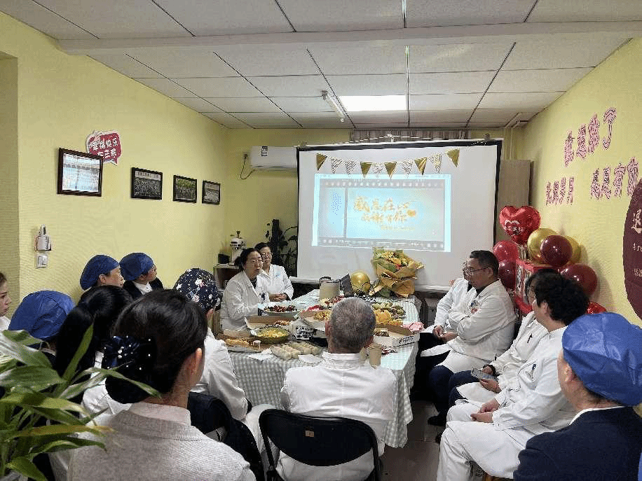 欢送会一开始,播放了一段精心制作的照片视频,主角就是两位退休的老师,大部分照片都是科室团建的照片,时间最早可以追溯到10多年前的时光,大家一起回忆着过去的点点滴滴,分享着每一张照片背后的故事。大家纷纷与手捧鲜花的两位老师合影留念,记录下这难忘的时刻。