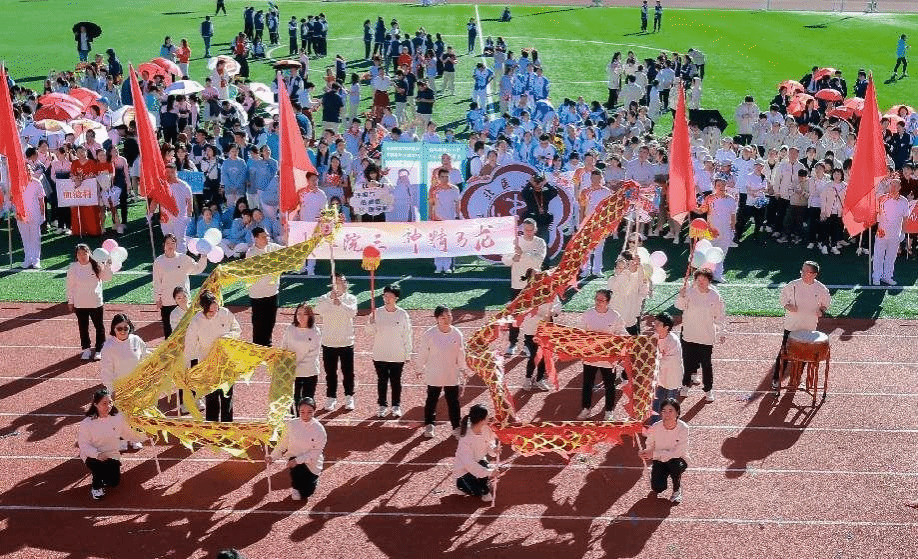 在雄壮激昂的运动员进行曲中,第二门诊部运动员代表队由三十名英姿飒爽的成员组成,他们以矫健的身姿生动诠释了第二门诊部“奋发向上、团结拼搏”的核心理念。恰逢2024年龙年之际,我们别出心裁地以两条活灵活现的巨龙为阵形,气势磅礴地步入主席台前,两龙交相辉映,嬉戏盘旋,巧妙地编织成数字“66”,寓意着北医三院在其辉煌历程中迎来的第66个春秋所取得的卓越成就。经过评审团的严谨细致的评选,第二门诊部最终荣获了第40届运动会“风采奖”的殊荣。