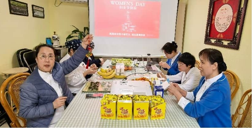 屏幕上的祝福词——祝所有女性不被定义,活出最美的你,桌上的可爱甜点以及我们的劳动成果,此刻场景,我们幸福地感受到第二门诊部大家庭的关爱与祝福,不仅在工作之余释放压力,而且也完成了一次非遗的心灵体验之感。