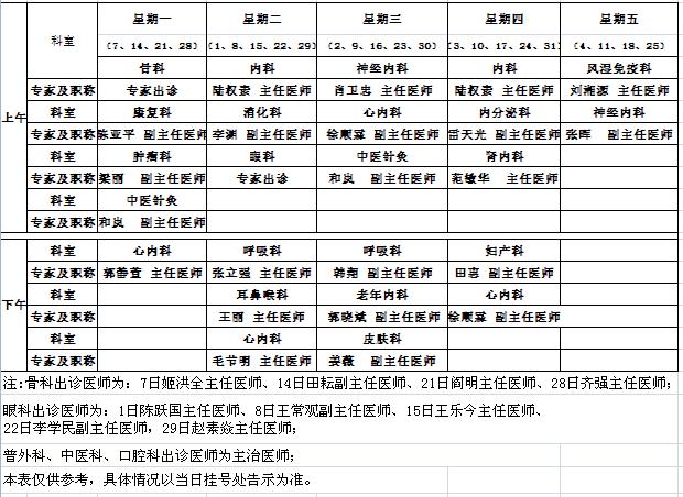 中央党校院区2011年4月专家出诊表