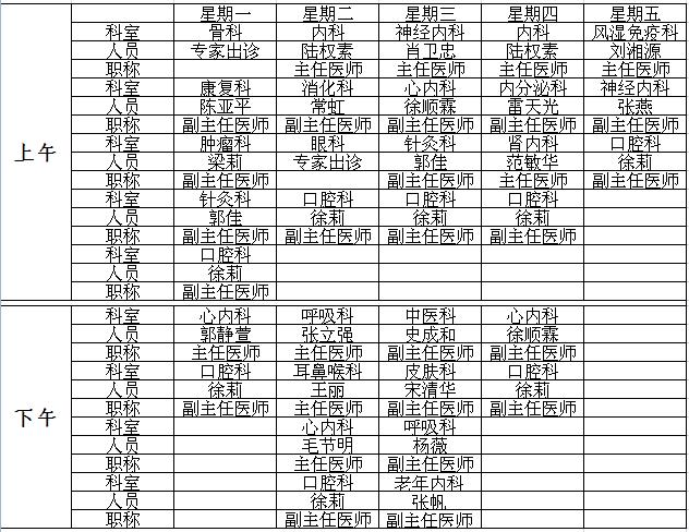 注:普外科、口腔修复科出诊医师为主治医师,本表仅供参考,具体情况以当日挂号处告示为准