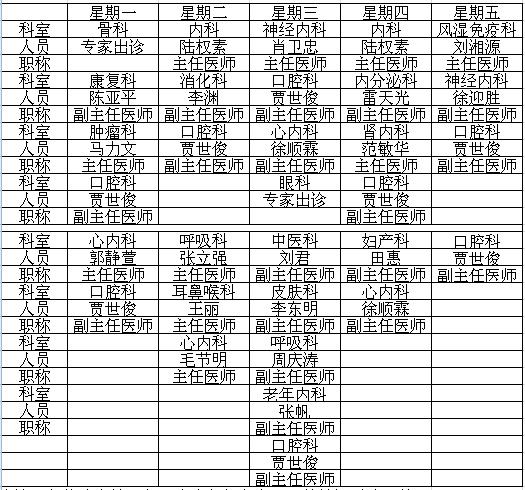 注:普外科、针灸科出诊医师均为主治医师,本表仅供参考,具体情况以当日挂号处告示为准