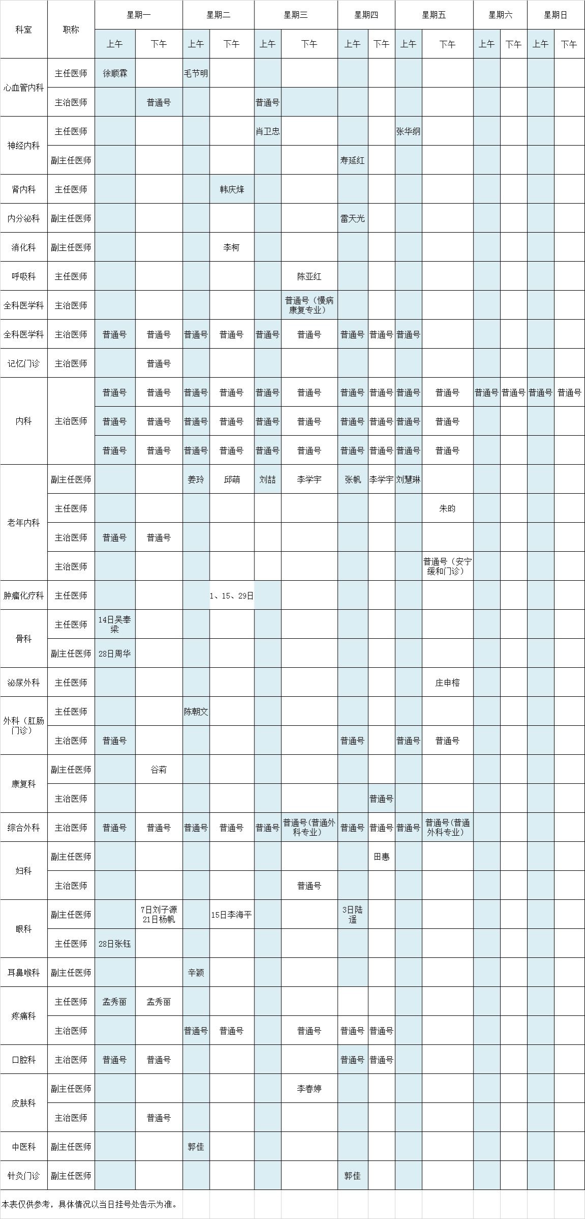2023年7月北京大学第三医院中央党校院区出诊表