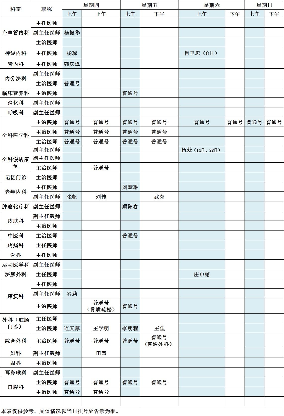 2026年3月北京大学第三医院中央党校院区出诊表
