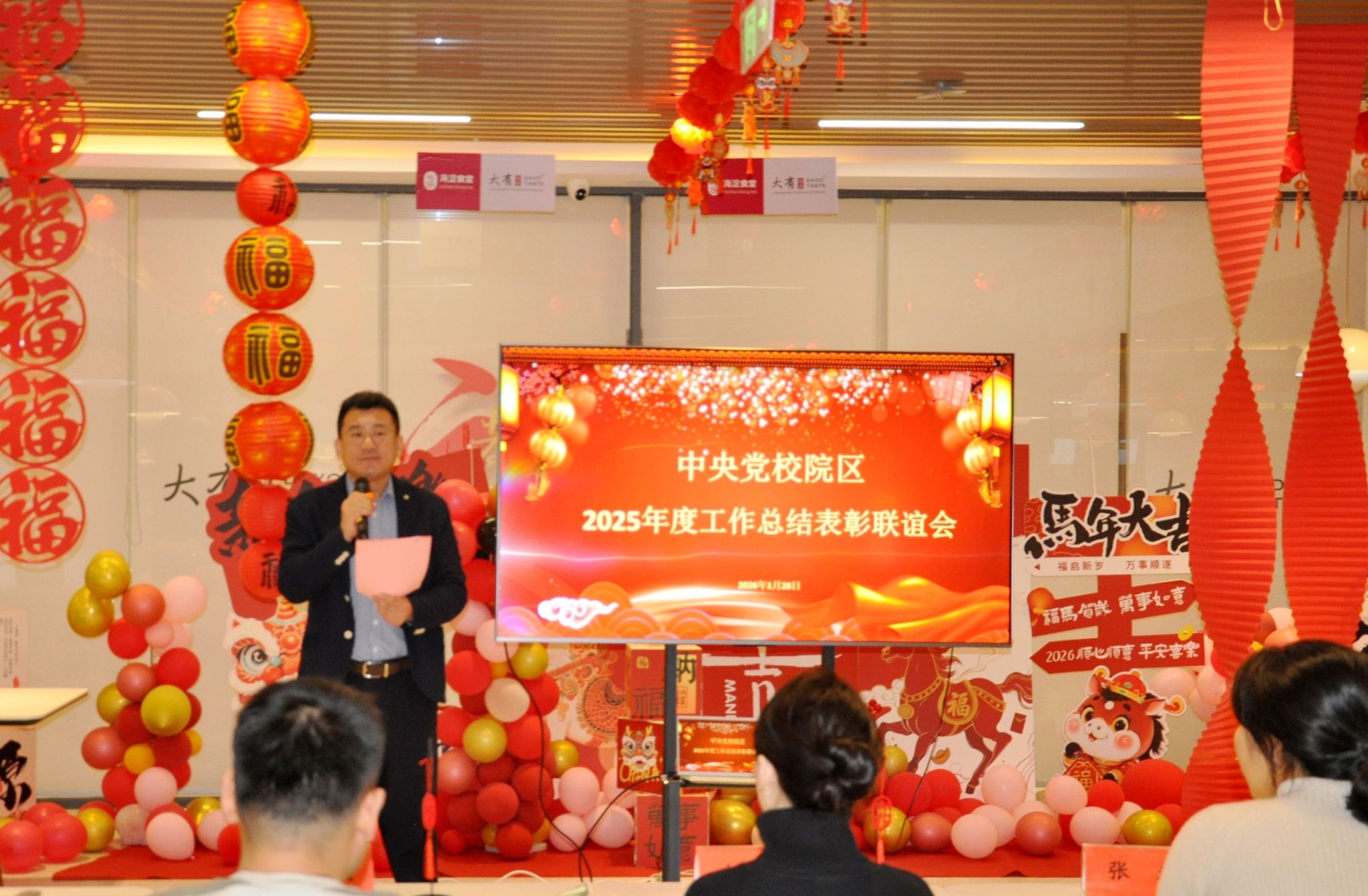 ‘旧岁已展千重锦,新年更进百尺竿’。2026年1月28日正值新春佳节来临前夕,中央党校院区隆重召开《2025年度工作总结表彰联谊会》。中共中央党校(国家行政学院)卫生处处长张米、副处长朱小玮、芮鹏飞,北医三院干部保健处处长王剑、护理部副主任李蕊、保卫处副处长杨帆、总务处副处长赵伊楠、北方院区医务处副处长池建昌、医院感染管理处杜俊以及院区属地临床科室领导、医技科室负责人与院区全体工作人员齐聚一堂,共同回顾过去一年的奋斗历程,展望未来的发展蓝图。表彰会由院区党支部书记、副院长徐凤奎主持。