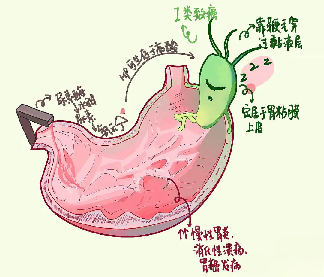 幽门螺杆菌感染会导致胃壁炎症, 随着病情的进展,会引发癌变可能,有胃肠不适表现的患者应定期胃镜检查。