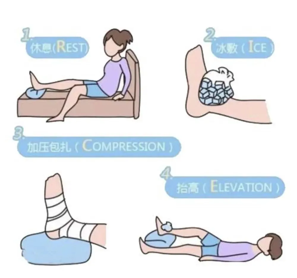 >Ice:冷敷肿痛部位(冰块、冰袋、冰水混合物等)10-15分钟,每天数次(可每2小时一次)。不要让冰块直接接触皮肤,可用毛巾隔离,避免冻伤皮肤。