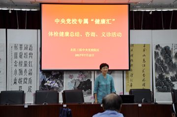 7月12日下午,党校院区邀请我院神经内科、老年内科、消化科、眼科、泌尿科、耳鼻喉科和普通外科专家为党校职工进行体检后健康总结和义诊咨询活动。中央党校教职工每年分两批(上、下半年)进行体检,院区一直以来本着...