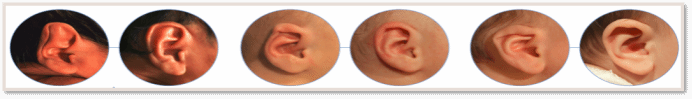 耳廓形态异常---由于产道挤压、胎位睡姿等外力因素作用在耳廓上引起的形态学变化。这类患儿在新生儿早期进行相关的耳廓形态的无创矫正,往往就能达到较好的形态改善。