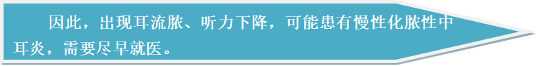注意:这类患者由于存在鼓膜穿孔,外耳道是不能进水的,洗澡或者游泳都会造成耳进水,引发感染。反复的感染就会导致听力逐渐下降。