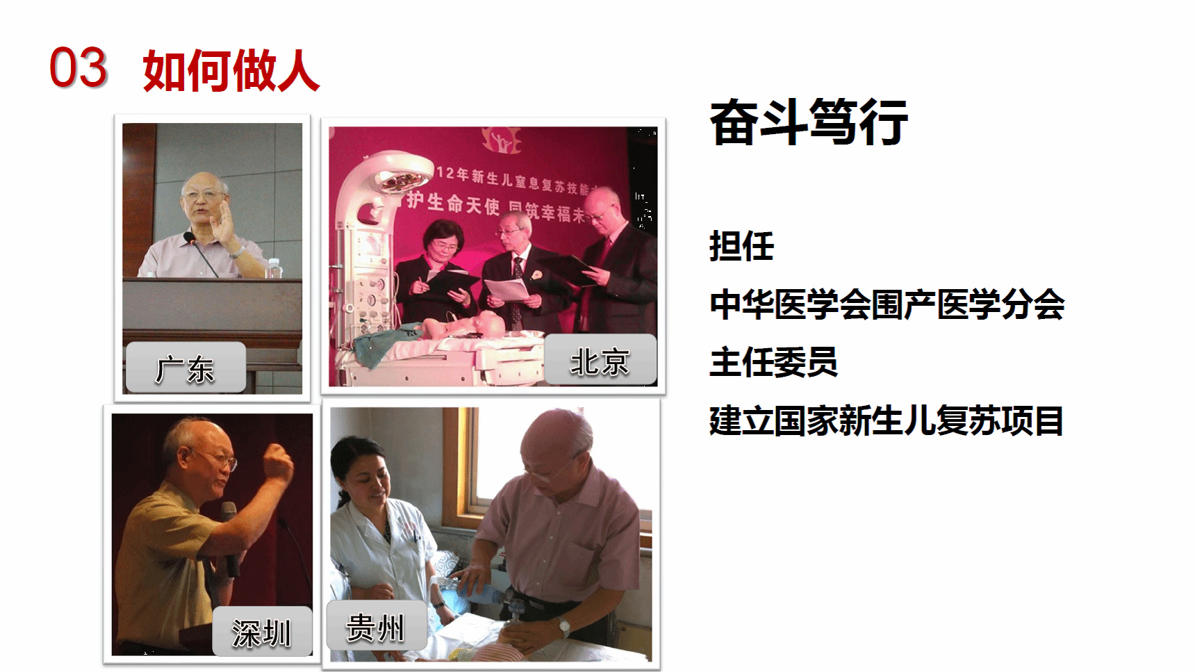 叶鸿瑁教授,在担任中华围产医学分会主任委员时,创立国家新生儿复苏项目,担任专家组组长,七十多岁高龄时,还每周奔赴全国各地,进行新生儿复苏培训。
