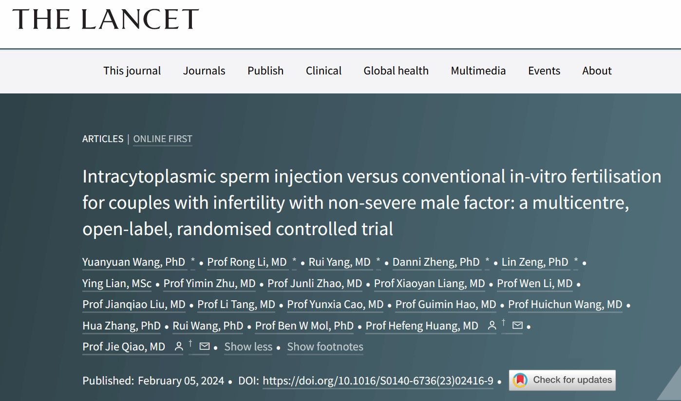 Academician Qiao Jie from Peking University Third Hospital Leads in Publishing the Latest Research Results on IVF Technology in The Lancet
