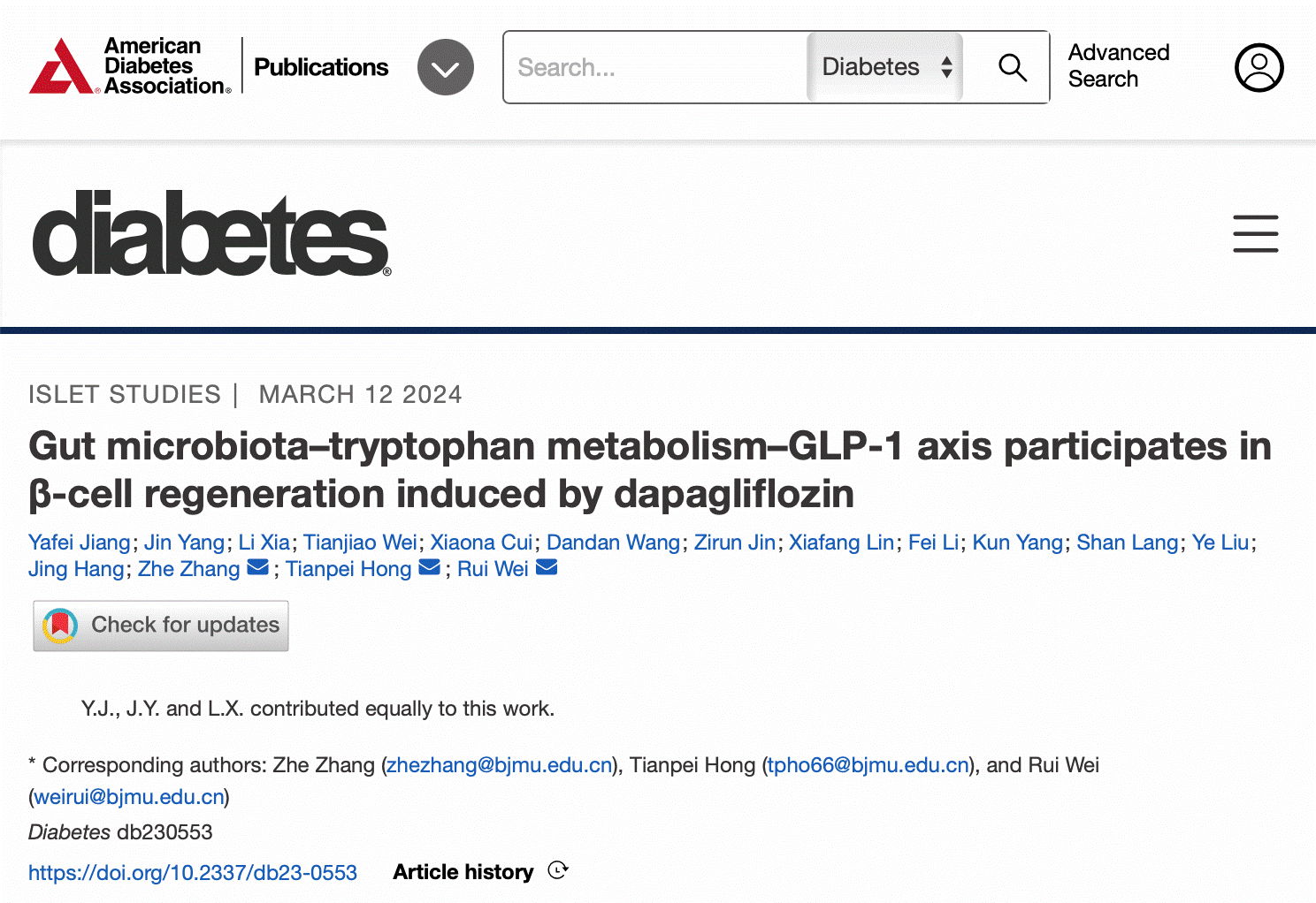 Research Team of Wei Rui, Hong Tianpei, Zhang Zhe from Peking University Third Hospital Publishes Latest Findings on Pancreatic β-Cell Regeneration Mechanisms in Diabetes