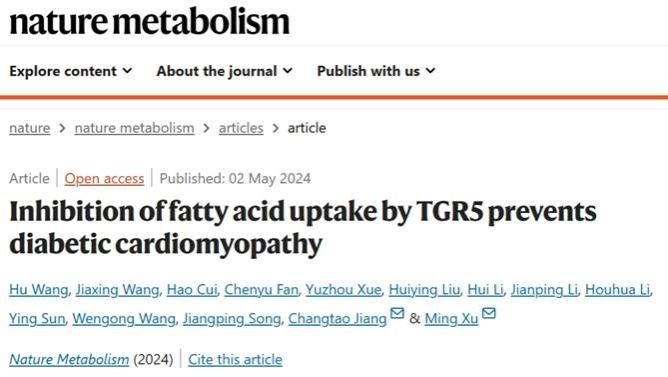 Professor Xu Ming's Team from Peking University Third Hospital Publishes Frontier Exploration on Cardiac Lipid Regulation in Diabetic Cardiomyopathy in Nature Metabolism