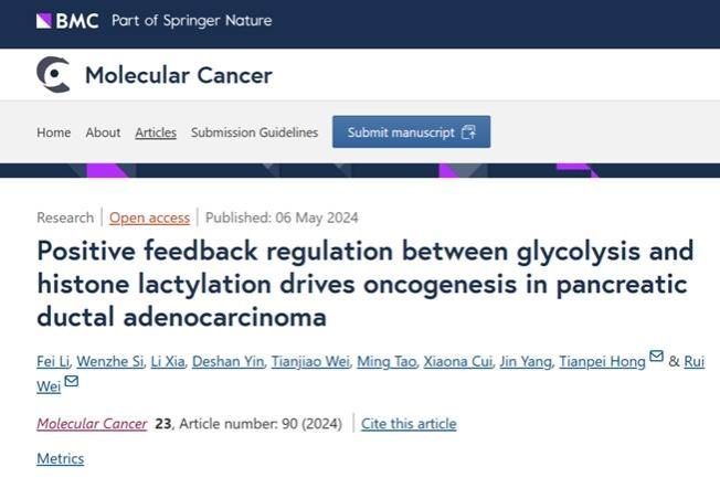 Peking University Third Hospital's Wei Rui/Hong Tianpei Team Discovers New Mechanism of Glycolysis-Histone Lactylation Positive Feedback Loop Promoting Pancreatic Ductal Adenocarcinoma Development