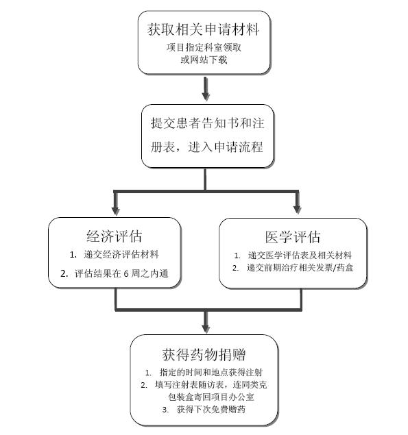 三、医学评估材料:首次医学评估资料(接受免费药物前);由项目执行医生完成的首次医学评估表;对于非低保类患者,需要提供类克药物发票的复印件(购买人和申请人名字一致,医院发票如未注明类克,请提供医院盖章的用药清单)、所有使用的类克药品包装盒及医学随访资料(接受免费药物后)。对于所有患者,每次接受免费药物,需向项目办公室提供:由项目执行医生完成的医学随访表、类克捐赠药品注射确认单(由医生/护士/患者三方签字确认)、及每次使用的类克捐赠药品包装盒。项目办公室在收到以上材料后决定下一次的药品发放。