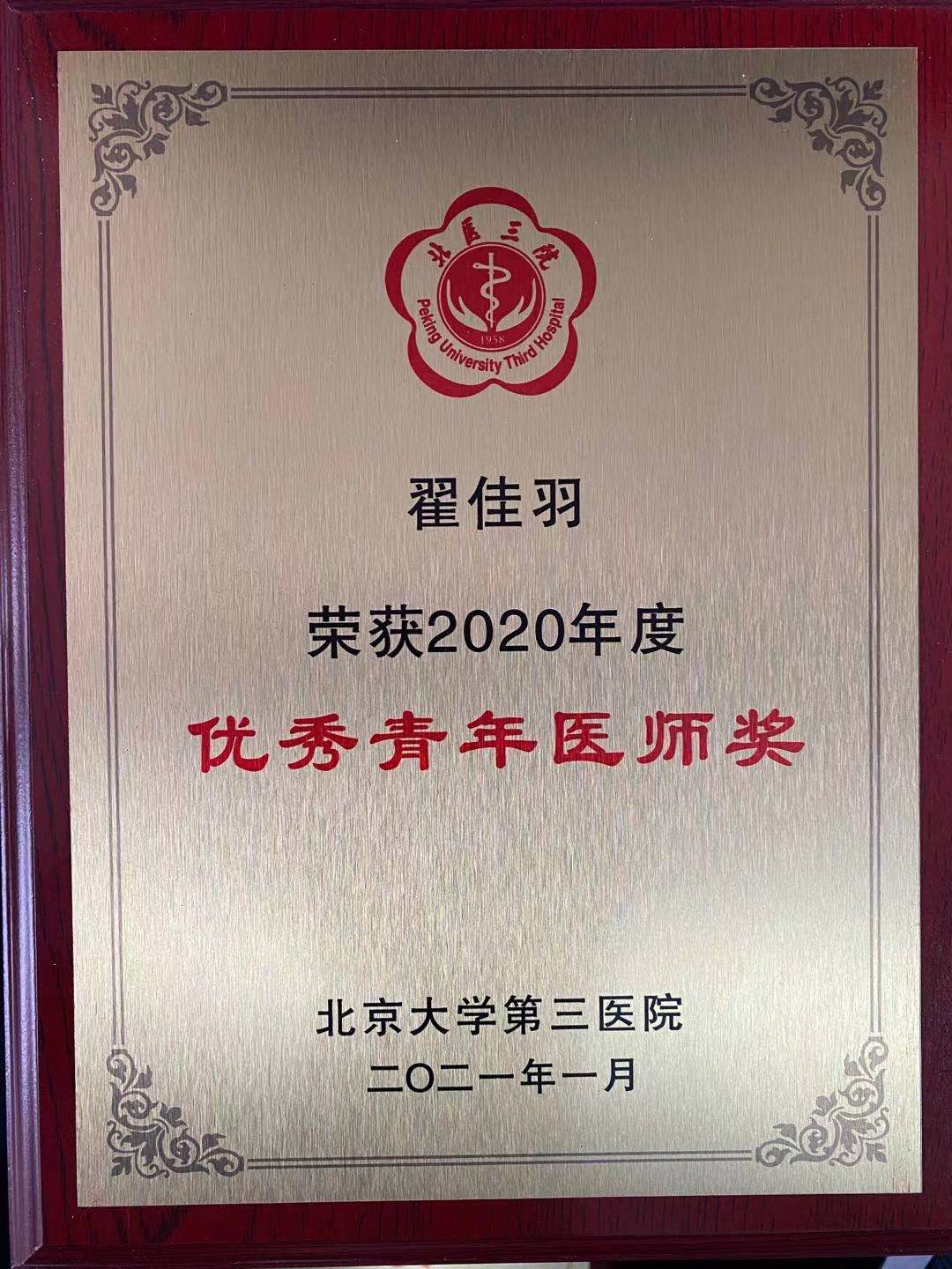 祝贺我科翟佳羽医师荣获北医三院2020年度优秀青年医师奖